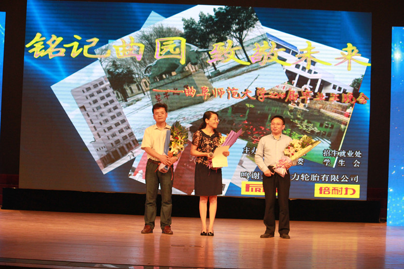 晚会期间,化学与化工学院王桦教授、教育科学学院副院长唐爱民教授、外国语学院的任庆梅教授作为教师代表,向2014届毕业生送去了最诚挚的美好祝福。希望毕业生牢记曲园人的风格与使命,坚持信念,铸就“多姿多彩的人生理想”走向“多元奔放的人生旅程”。晚会尾声,各学院毕业生辅导员上台献唱《明天会更好》,并向即将离校的同学们发出真切呼唤:常回家看看。