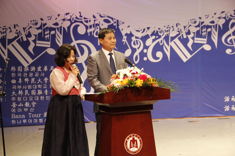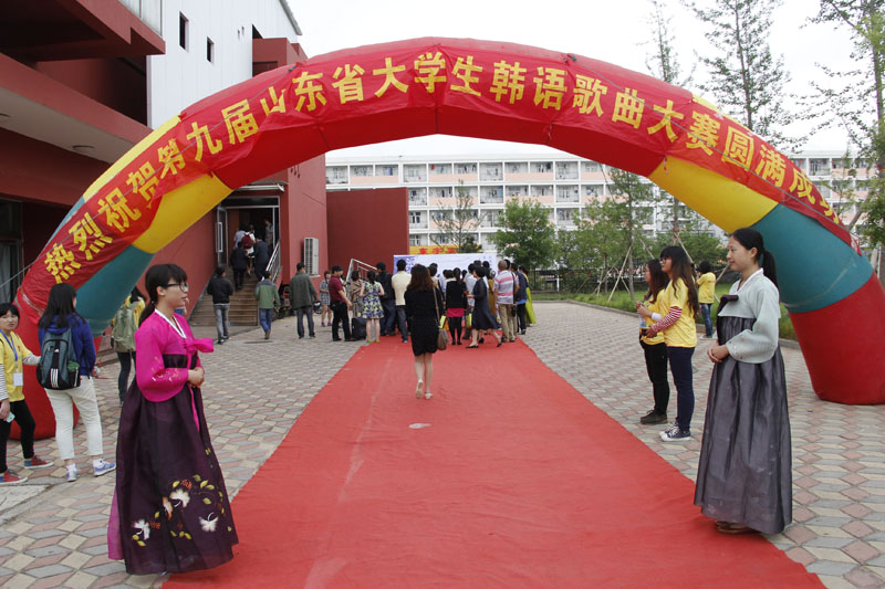 加强中韩两国在文化领域里的交流与合作,促进山东省高校大学生对韩国文化的理解,提高学习韩语的兴趣。5月24日上午,韩国旅游发展局主办,万象城官方网站承办,大韩民国驻青岛总领事馆,釜山航空及HANA TOUR旅游社协办第九届山东省大学生韩语演唱比赛在我校日照校区举行。大韩民国驻青岛领事馆领事成雄庆,我校纪委书记郭辰夫,韩国旅游发展局山东代表处首席代表赵洪俊,釜山航空驻青岛办事处代表金泰完,日照锦湖金马化学有限公司总经理金成男,北京极东物流有限公司董事长咸弘万,日照市音乐家协会副主席卢莉娜及我校翻译学院负责人出席次活动。本次比赛由成雄庆、赵洪俊、卢莉娜、崔源准、李英善、金善焕、文周锡担任比赛评委。