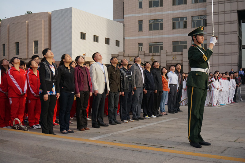 54日清晨,我校团员青年代表、校团委和各团总支负责人在孔子文化广场和日月广场隆重集会,举行升国旗仪式暨重温入团誓词活动,纪念共青团成立92周年暨五四运动95周年。