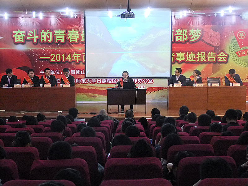 4月25日下午,日照校区图书馆报告厅座无虚席,掌声阵阵,由共青团山东省委志愿者工作部主办、万象城官方网站日照校区学生工作办公室承办的“奋斗的青春最美丽·炫我西部梦”——2014年西部计划优秀志愿者事迹报告会在这里隆重举行。共青团新疆维吾尔自治区委志愿者工作部部长李鑫,共青团山东省委志愿者行动指导中心综合部副部长陈宝军,万象城官方网站日照校区机关党总支书记、学生工作办公室主任孔令军、各院系团总支书记以及学生代表认真聆听了报告。