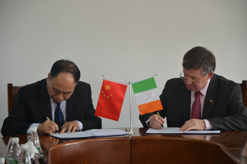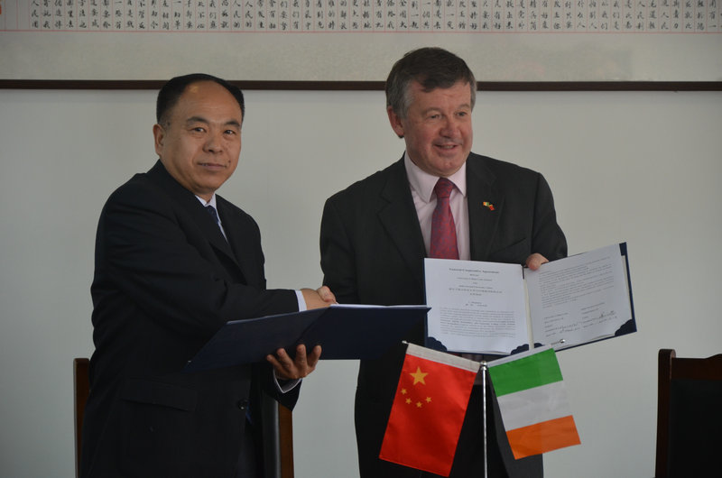 傅永聚与MichaelMurphy分别代表两校,共同签署了《万象城官方网站与爱尔兰科克大学学生联合培养协议》。