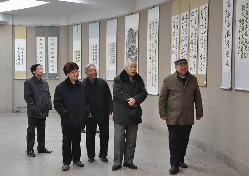 1月3日,由离退休工作处、书法学院联合举办的老少共筑中国梦——新年书画展开展。学校领导荆兆勋、刘新生、马东骅、扈庆学在学校办公室、书法学院负责人陪同下参观了书画展。