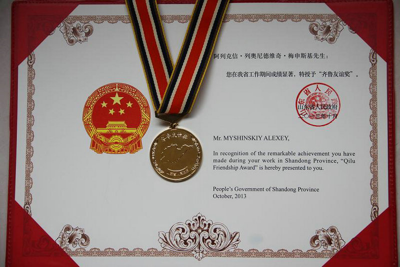 “齐鲁友谊奖“是山东省政府为表彰外国专家在我省经济和社会发展中所作出的突出贡献而设立的,是授予在鲁工作外国专家的最高奖励。我省自1993年开始设立“齐鲁友谊奖”,至今全省已有391名外国专家获此荣誉。