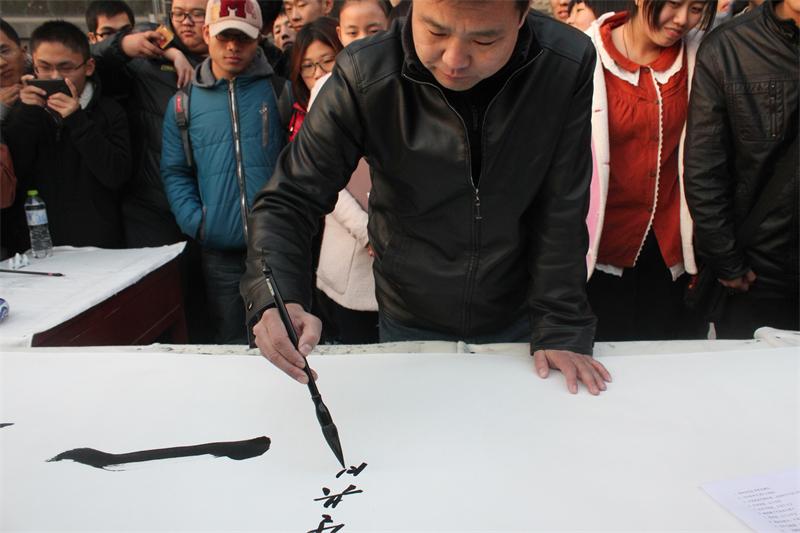 书法学院书法文化艺术节之“师生共筑中国梦”百米长卷现书活动举办
