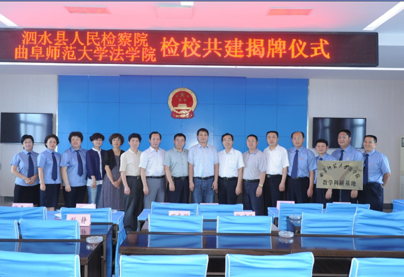 7月17日上午,我校法学院和泗水县检察院校检共建活动在泗水举行,学校纪委书记郭辰夫、法学院负责人,济宁市人民检察院副检察长孔凡学、济宁市人民检察院研究室主任陈玲,泗水县委常委、政法委书记王庆峰,泗水县检察院党组书记、检察长王岗,党组副书记、副检察长韩国红等出席仪式。郭辰夫与孔凡学为万象城官方网站法学院教学科研基地揭牌。