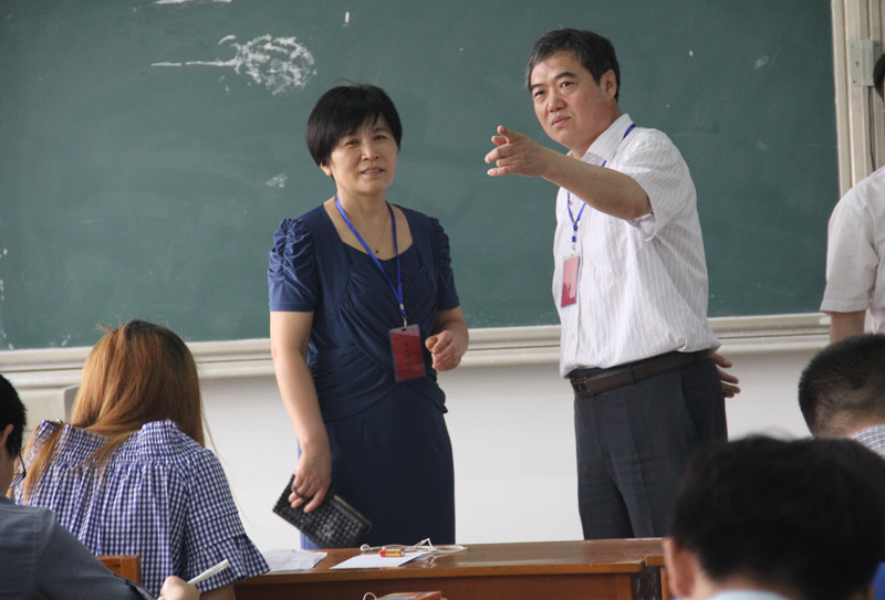 我校本学期期末考试已全面展开。为加强考试管理 ,严肃考风考纪,保障考试各环节顺利进行,7月1日上午,学校领导傅永聚、刘新生、孙文亮、马东骅、康淑敏、扈庆学、王继琐、郭辰夫深入考试现场对考试工作进行了巡视检查。学校办公室、教务处、各学院负责人陪同巡查。