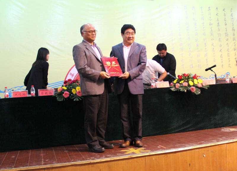 在兼职教授聘任仪式上,孙文亮代表学校向陈荣隆、蔡茂寅、廖钦福及罗承宗先生颁发了兼职教授聘任证书并向各位来宾赠送纪念品。蔡茂寅先生在答谢词中赞扬了齐鲁传统文化的魅力和我校的优良传统,对我校的盛情表示感谢并期待进一步加强互动。此后,孙文亮和陈荣隆共同为法学院杏坛学堂卓越班揭幕。