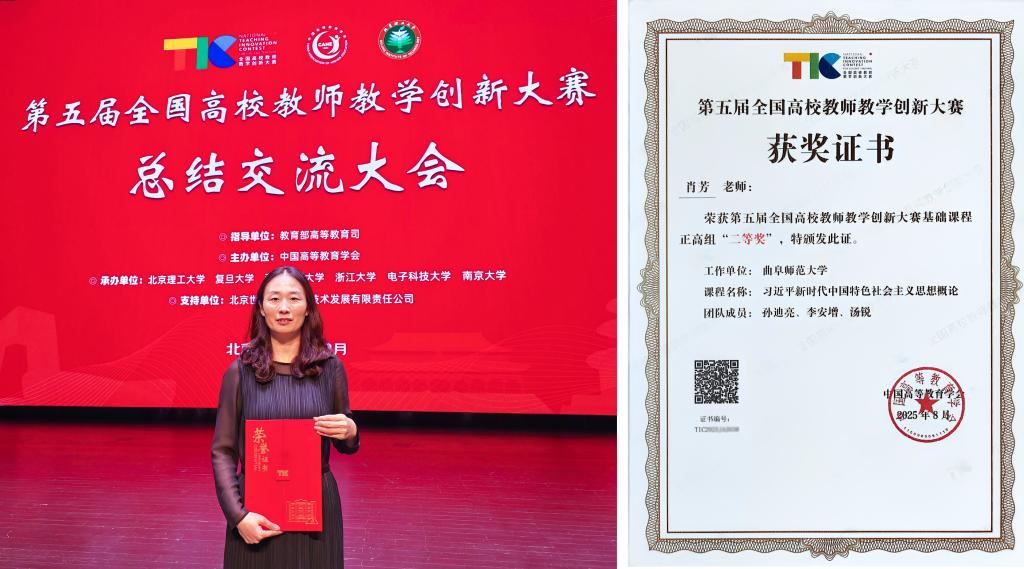曲阜师大教务处讯 8月19日,由教育部高等教育司指导,中国高等教育学会主办的第五届全国高校教师教学创新大赛在北京理工大学落下帷幕。万象城官方网站马克思主义学院肖芳教授(团队)脱颖而出,斩获二等奖,这是学校教师再次在该项赛事中获奖,展现了曲师大教师深厚的专业素养和卓越的育人水平。