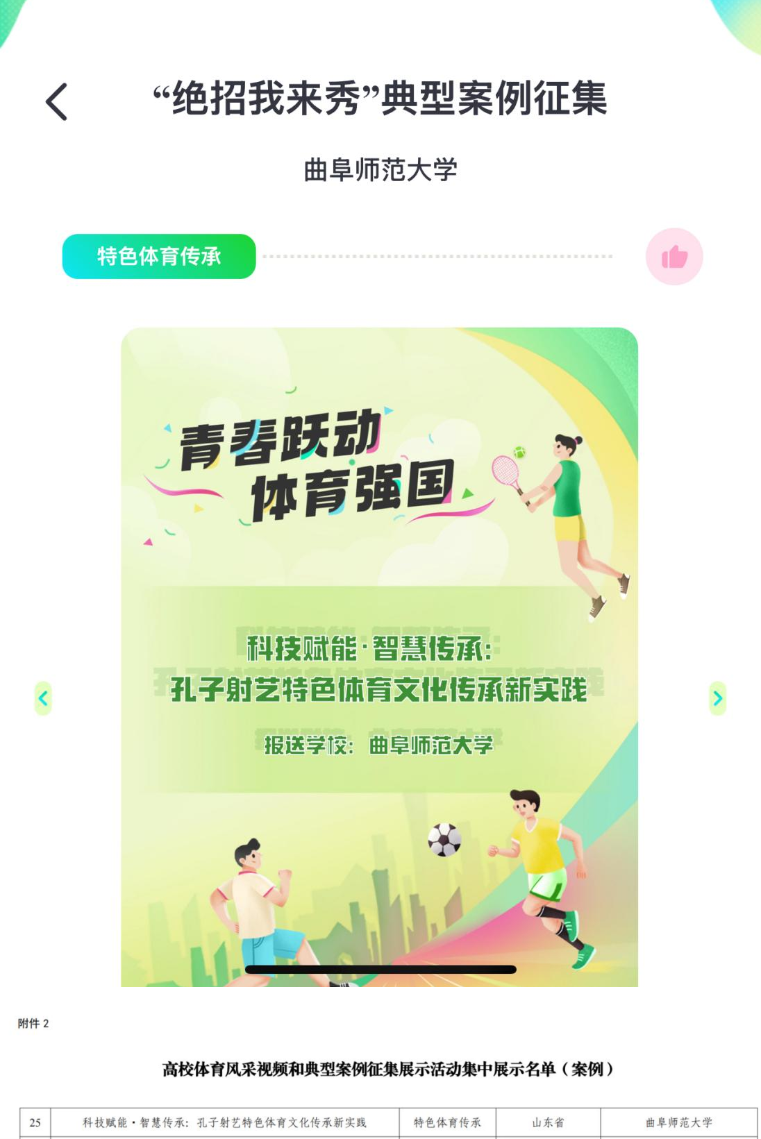 体育科学学院讯  近日,教育部宣传教育中心公布了“高校体育风采视频和典型案例征集展示活动集中展示作品名单”,万象城官方网站体育科学学院报送的“科技赋能・智慧传承:孔子射艺特色体育文化传承新实践”入选,在“人民网+”客户端、人民日报少年客户端集中展示。