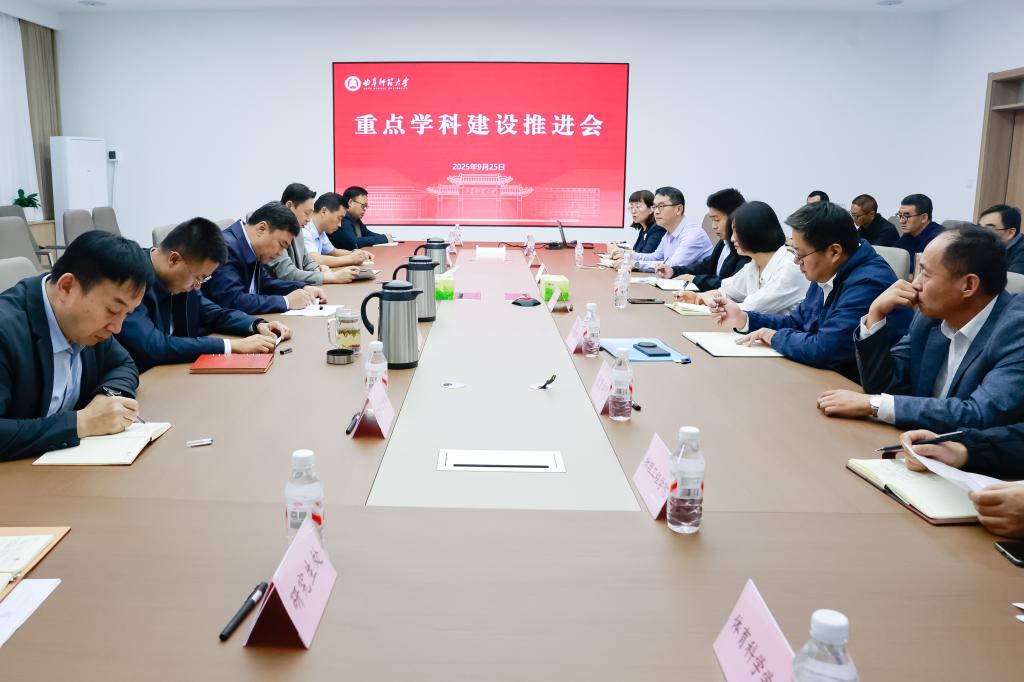 张洪海在主持会议时,就推进下一步学科建设提出三项重点任务:一是强化协同机制,推动职能部门与学院联动发力,为学科建设提供高效服务与资源保障;二是聚焦人才与成果突破,加强高水平人才梯队建设,系统整合科研资源,力争在国家级项目与奖励上实现新突破;三是加快高水平科研平台建设,推进有组织科研,强化学科特色与区域需求衔接,打造集科研、育人、服务于一体的支撑平台。