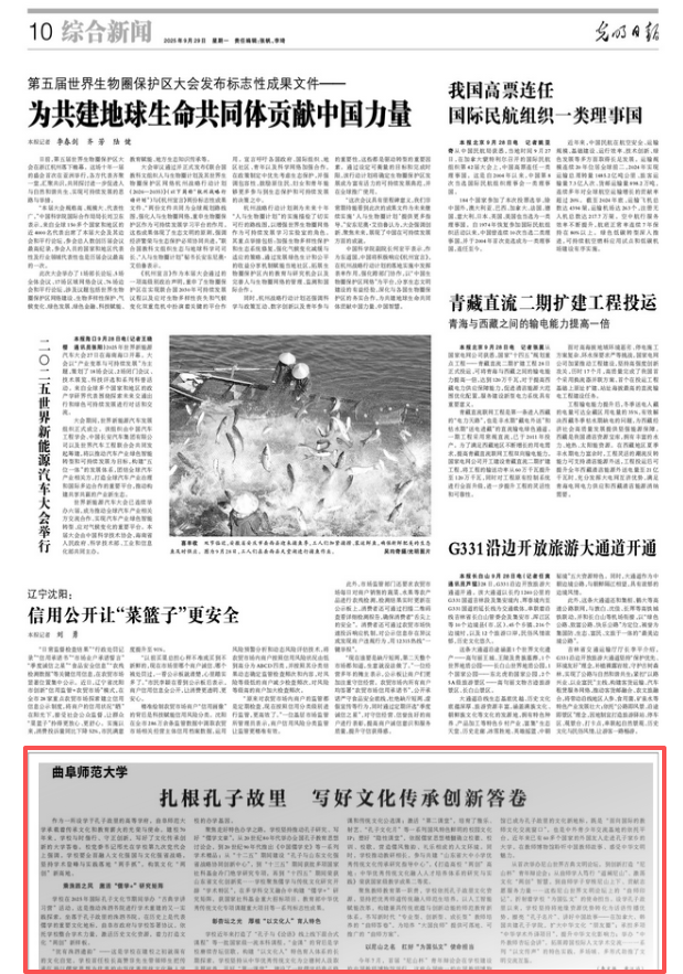 9月29日,《光明日报》刊发题为《万象城官方网站:扎根孔子故里 写好文化传承创新答卷》的文章,报道了学校建校70年来与时偕行、守正创新,弘扬中华优秀传统文化的特色做法与经验。