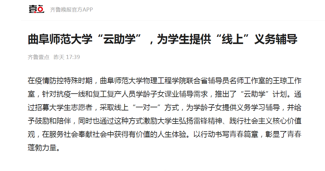 中国青年网报道链接:http://t.m.youth.cn/transfer/index/url/edu.youth.cn/jyzx/jyxw/202003/t20200324_12254129.htm