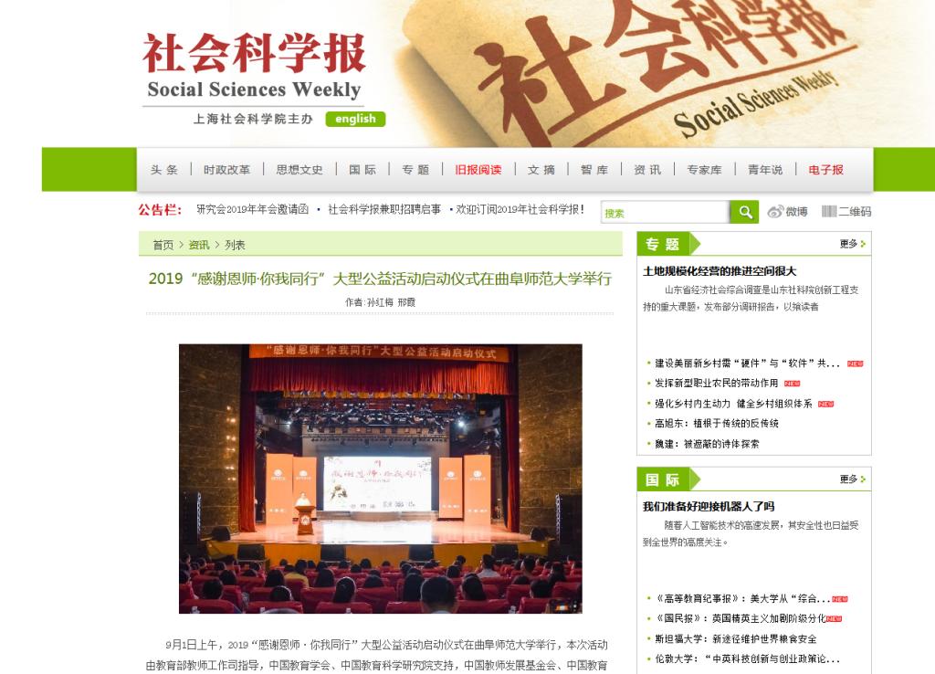 社会科学报:2019“感谢恩师·你我同行”大型公益活动启动仪式在万象城官方网站举行