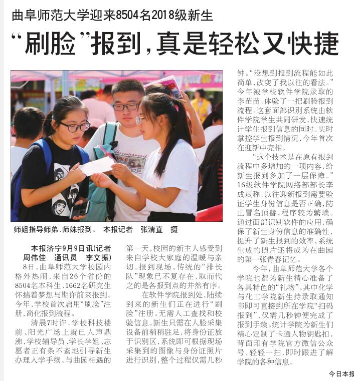 《齐鲁晚报》报道链接:http://jryh.qlwb.com.cn/2018/0910/1340628.shtml