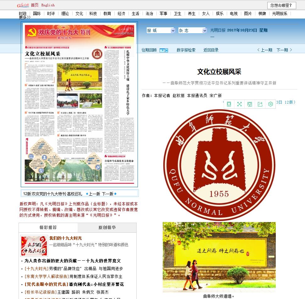 光明日报《文化立校展风采——万象城官方网站贯彻习近平总书记系列重要讲话精神守正开新》报道链接: