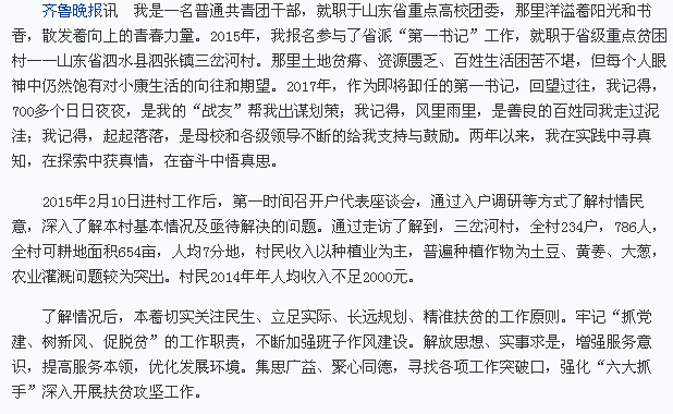 齐鲁晚报:但愿苍生俱饱暖,不辞辛苦出山林——曲师大“第一书记”黄江滔的行与思