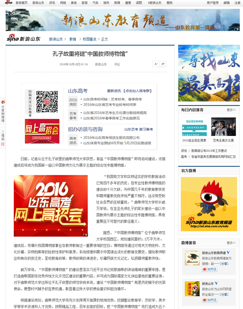 新浪网:孔子故里将建“中国教师博物馆”