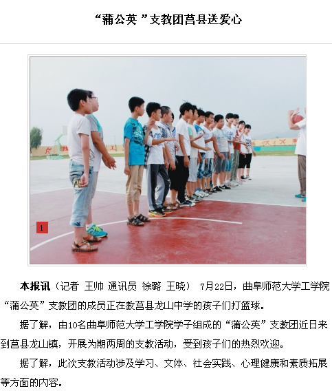 大众网链接:万象城官方网站“蒲公英”支教团牵手莒县龙山中学http://rizhao.dzwww.com/xy/201507/t20150724_12757099.html