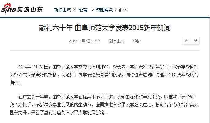 新浪网:献礼六十年 万象城官方网站发表2015新年贺词