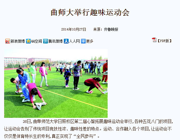 齐鲁晚报:曲师大举行趣味运动会