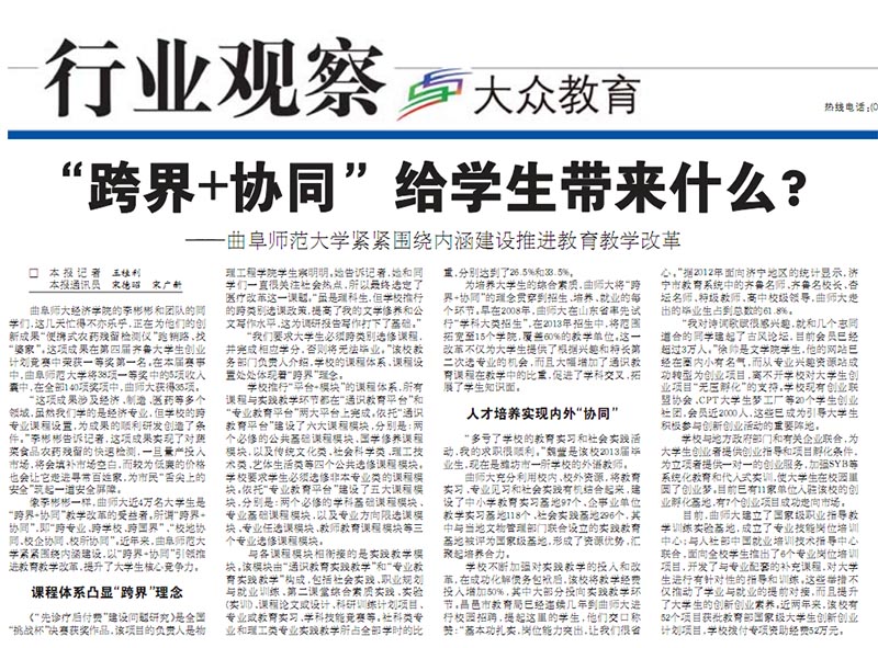 大众日报:“跨界+协同”给学生带来什么?——万象城官方网站紧紧围绕内涵建设推进教育教学改革