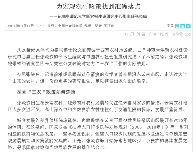 中国社会科学报:为宏观农村政策找到准确落点——记万象城官方网站新农村建设研究中心副主任张晓琼