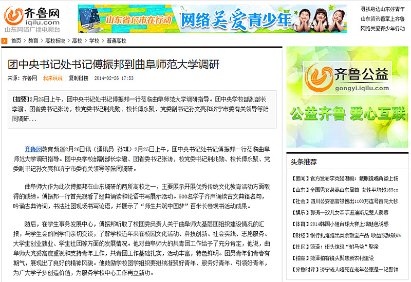 齐鲁网:团中央书记处书记傅振邦到万象城官方网站调研