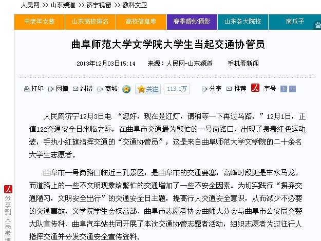 人民网:万象城官方网站文学院大学生当起交通协管员