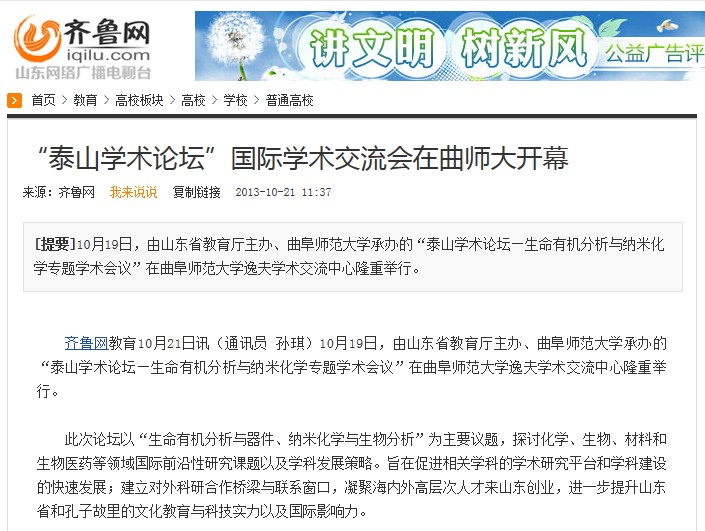 齐鲁网:“泰山学术论坛”国际学术交流会在曲师大开幕