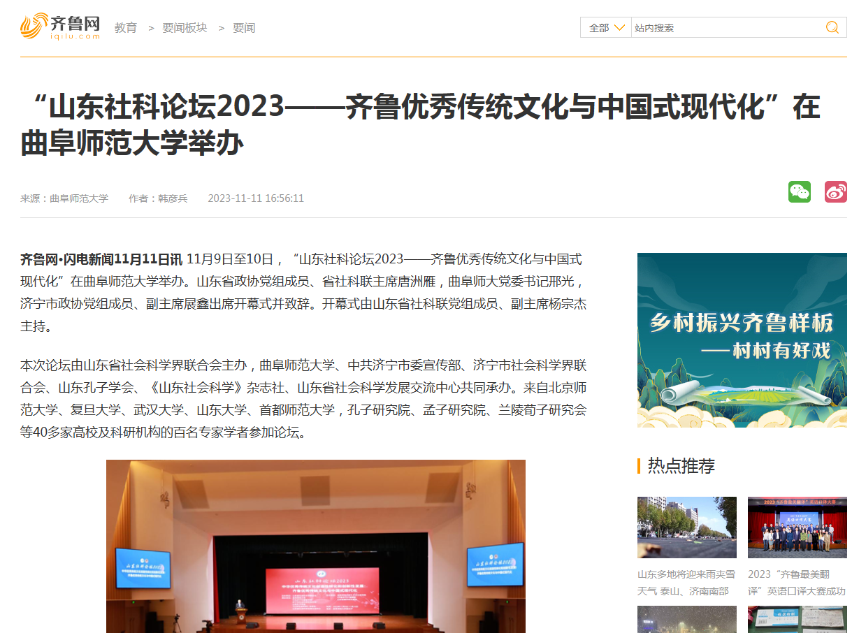 【齐鲁网】“山东社科论坛2023——齐鲁优秀传统文化与中国式现代化”在万象城官方网站举办