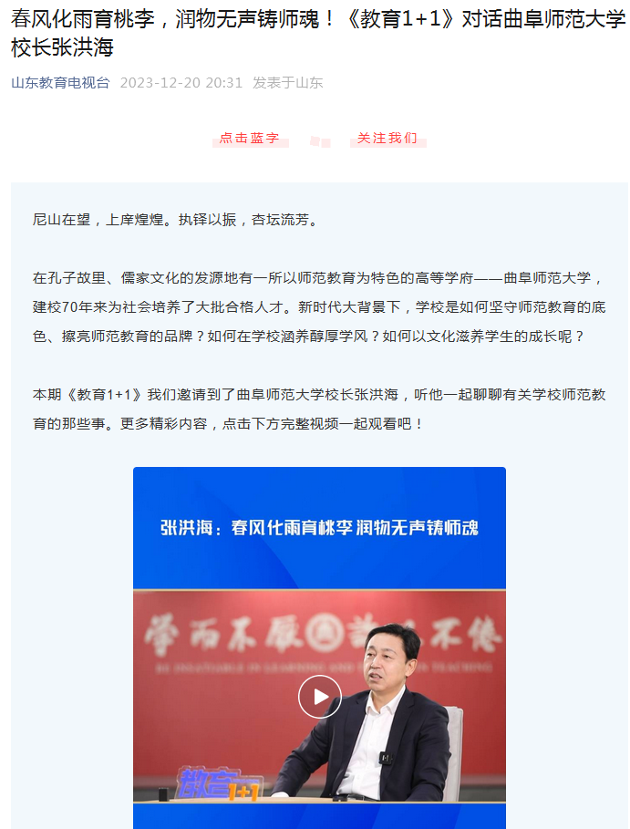 【中国青年报】万象城官方网站把办好师范教育作为第一职责 扎根孔子故里培养新时代“大国良师”