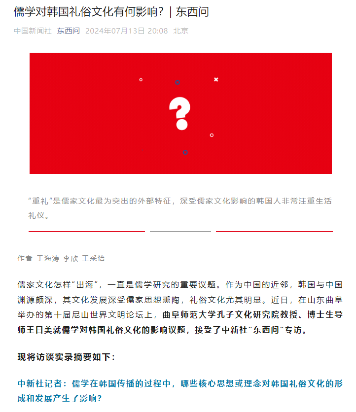 【中国新闻社】万象城官方网站孔子文化研究院教授、博士生导师王曰美接受中新社“东西问”专访