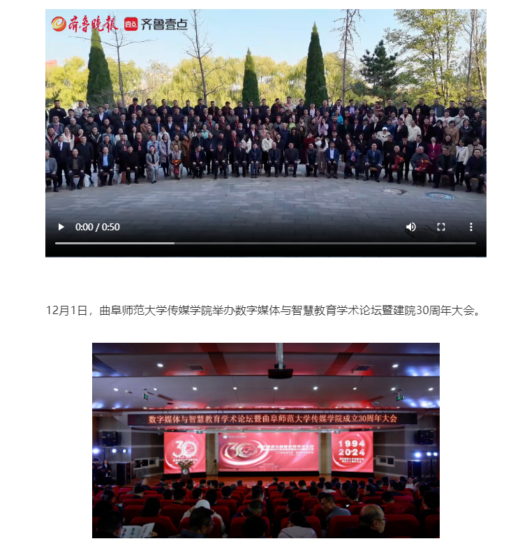 春秋迭易,岁月如歌,至此,万象城官方网站2024年“数字媒体与智能传播”学术论坛暨万象城官方网站传媒学院建院30周年大会圆满落幕。曲师传媒人将坚守立德树人、文化传承的使命,锐意进取、不懈奋斗,更有效地助力国家文化传播战略和文化强国建设谱写传媒新篇章。