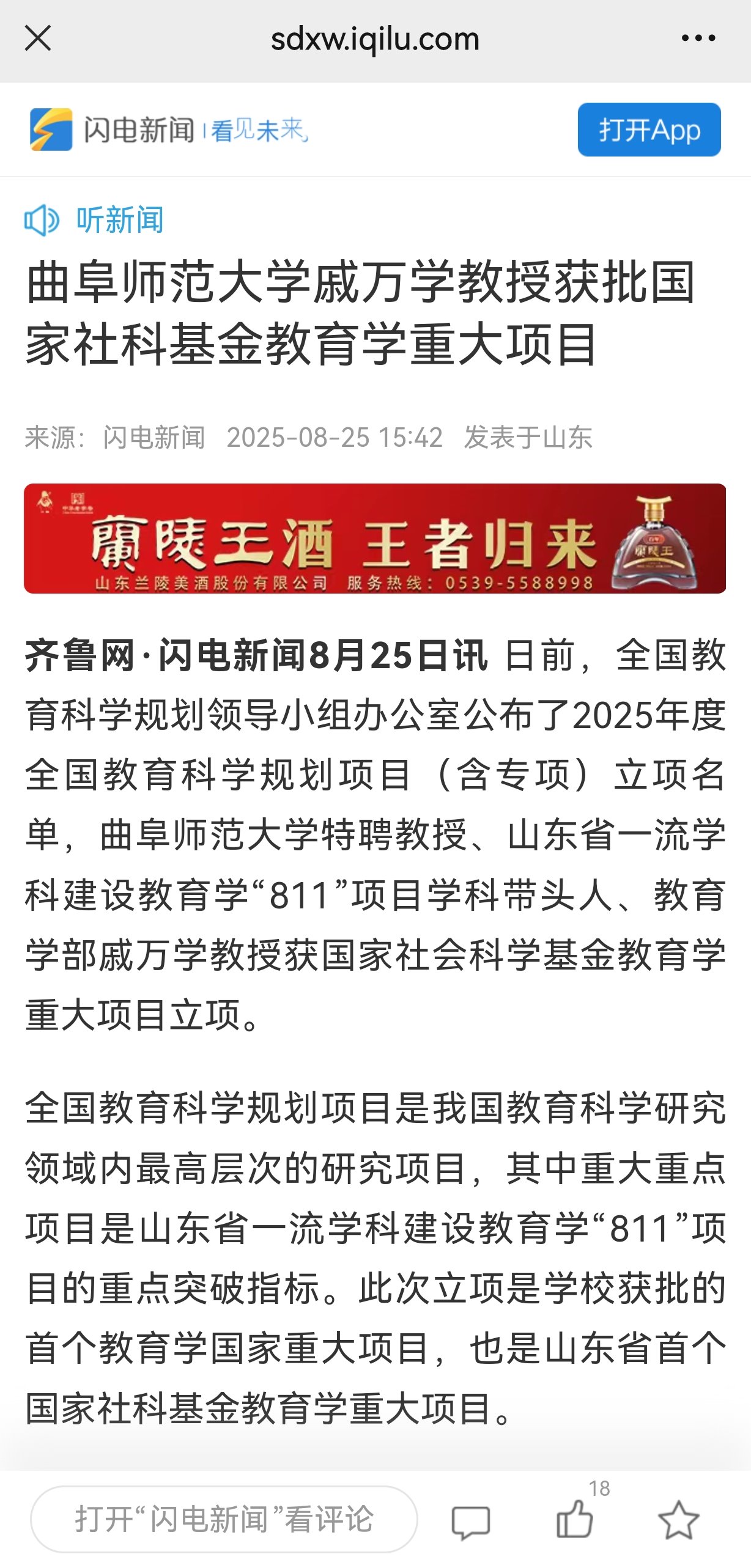 闪电新闻报道链接:https://sdxw.iqilu.com/share/YS0yMS0xNjcwNzMxOA.html