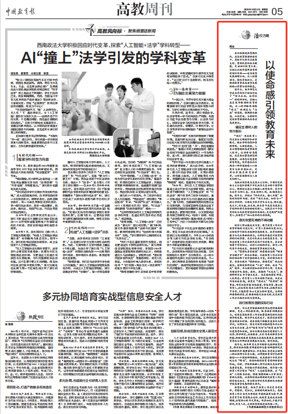 在加快推进教育现代化、建设教育强国的进程中,高校不仅要关注政策支持、资源配置和技术赋能,更应回归教育本质,深刻认识使命感所具有的引领性作用——它为教育发展指明方向、注入持续动力、强化责任担当,是推动教育事业高质量发展的核心引擎与精神根基。