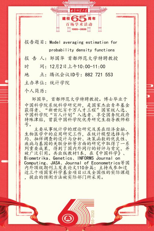 建校65周年百场学术活动-首都师范大学邹国华教授