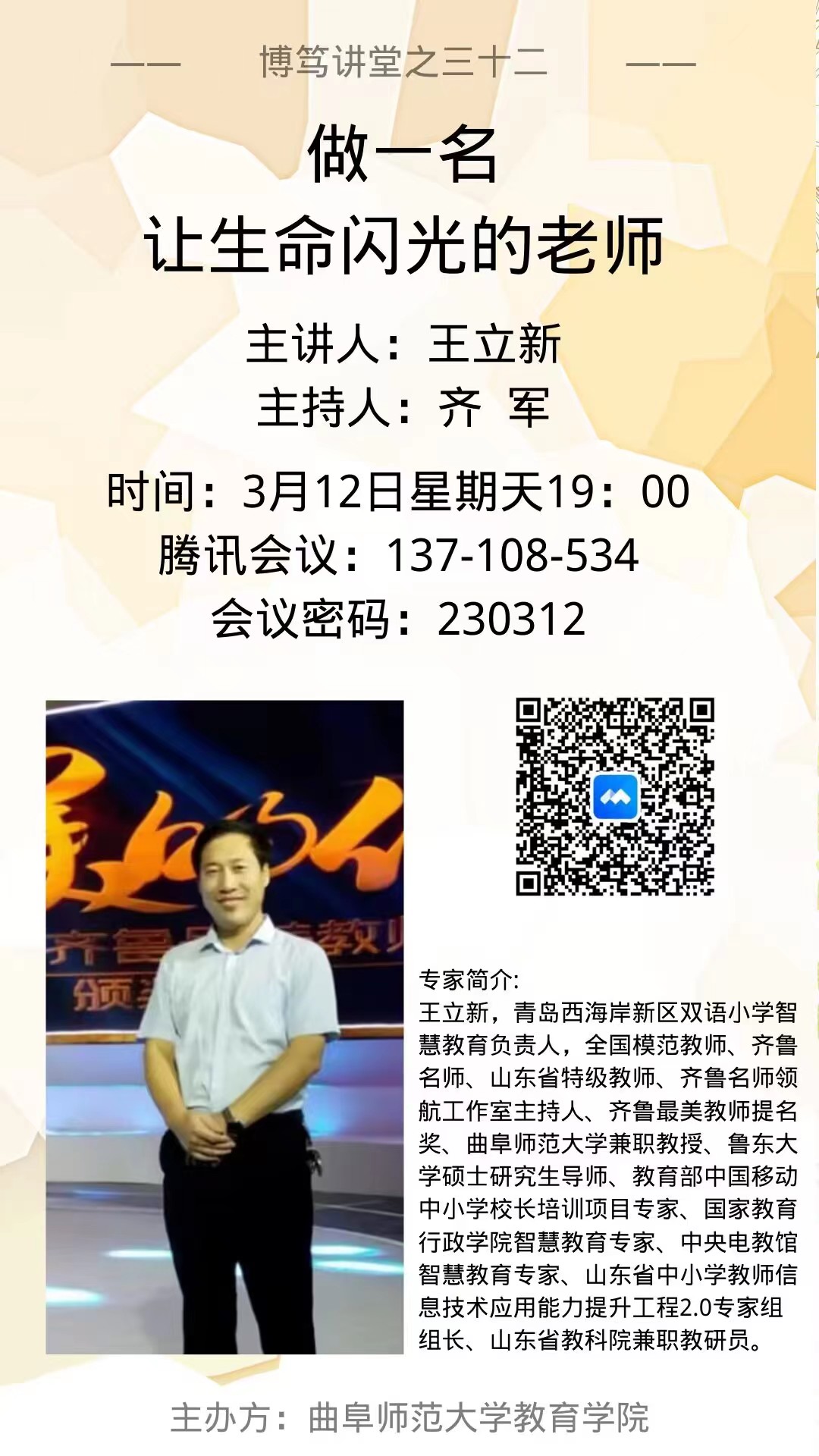 【博笃讲堂预告】王立新:做一名让生命闪光的老师