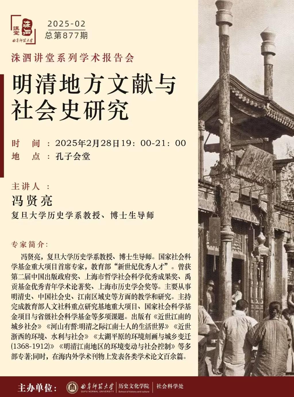 洙泗讲堂预告|冯贤亮:明清地方文献与社会史研究