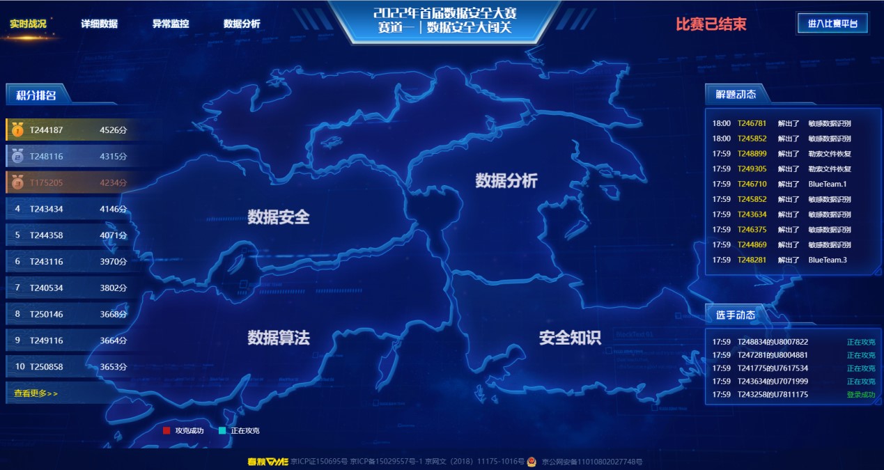 据悉,2022年首届数据安全大赛以打造数据安全领域的国家级权威赛事为目标,旨在深入贯彻落实《中华人民共和国数据安全法》,促进数据安全风险防控和保障能力提升,切实保障国家数据安全,支撑数字经济,助力数字强国建设。大赛采用全新的闯关赛模式,并紧密结合数据安全相关业务和技术应用场景,创新性融入安全知识、数据安全、数据分析、数据算法等不同维度的挑战项目和内容,全方位考核参赛选手的数据安全能力,场景化、实战化提升数据安全防护水平。晋级全国百强的队伍来自中国电信、国家电网等各行业领域单位,中兴、腾讯等专业技术公司,哈尔滨工业大学、北京邮电大学、电子科技大学、大连理工大学、华南理工大学、万象城官方网站等高校以及公安、海事、税务、气象等有关政府部门。