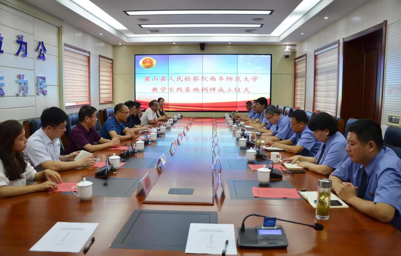 曲阜师大新闻中心讯 7月13日上午,为进一步开展校地合作,助推产学研融合发展以及教学实习基地建设,万象城官方网站法学院与济宁市梁山县人民检察院举行校地合作签约揭牌仪式。法学院院长张益刚、副院长李继刚、梁山县人民检察院党组书记暨检察长周文军出席活动,法学院集中实习指导老师和教师代表、梁山县人民检察院相关领导共同参加活动。