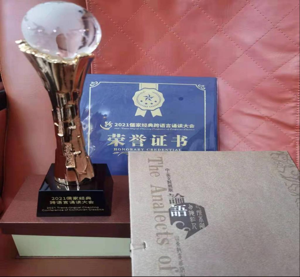 其中,霍俊国、孙晓伟老师指导的李一婷团队作品《礼之用 和为贵》经过线上直播展演、专家二次品鉴、网上投票等环节,在三千多个作品中脱颖而出,进入前十名,获得“最佳演绎作品奖”“儒家经典传诵人”“网络人气作品奖”3个奖项,获邀参加在山东教育电视台进行的颁奖典礼。李德高、冯萌萌老师指导的王聪团队作品《生于忧患 死于安乐》获得“儒家经典传诵人”“网络人气作品奖”2个奖项。杜兆金、秦海燕老师指导的李文成团队作品《论语》获得“儒家经典传诵人”“网络人气作品奖”2个奖项。霍俊国、夏静老师指导的穆雅琦团队作品《子路、曾皙、冉有、公西华侍坐》获得“儒家经典传诵人”“网络人气作品奖”2个奖项。杜兆金、刘嵘老师指导的乔峰团队作品《蒹葭》获得 “入围经典诵读大会奖” “网络人气作品奖”2个奖项。冯萌萌、李建校老师指导的任可馨团队,其作品《各言尔志》获得“网络人气作品奖”。