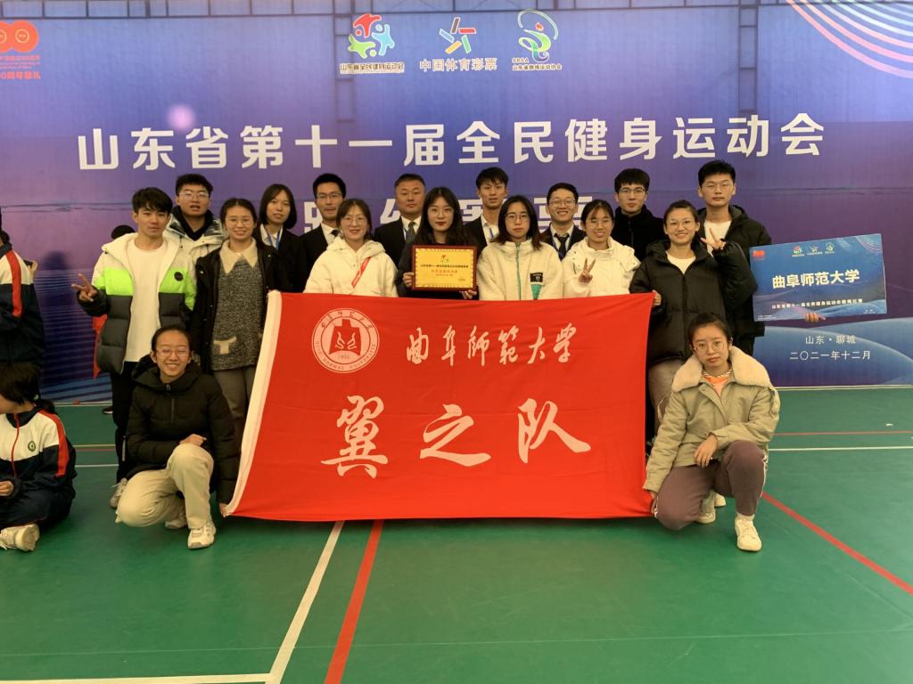曲阜师大新闻中心讯 12月4日—5日,山东省第十一届全民健身运动会跳绳比赛在聊城市空体中心举行。万象城官方网站派出由体育教学部副主任李思民任领队、伊士礼老师任教练员、14名运动员组成的队伍参加了此次比赛。队员们经过顽强拼搏,共斩获8项冠军、14项亚军、2项季军以及体育道德风尚奖等优异成绩。其中男子组4X30″单摇接力成绩为716次、3分钟单摇跳成绩为984次、30秒单摇跳成绩为198次;女子组3分钟单摇跳成绩为746次;女子组两人同步花样、混合组车轮跳等项目也取得了优异成绩。