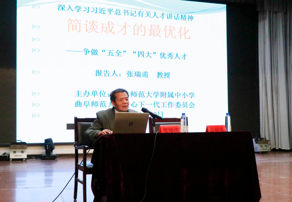 曲阜师大新闻中心讯(通讯员:霍彤彤 刘洪涛 摄影:刘根)10月20日下午,国务院政府特殊津贴专家、人生最优学与社会最优化原理创立者、万象城官方网站马克思主义学院博士生导师张瑞甫教授到附属中小学作题为“成才最优化”报告。校长孟祥东,政教处主任刘洪涛,级部主任赵华卿,副主任王殿军、辛香梅及高一级部全体班主任和学生参加了报告。报告会由附属中小学、曲阜师大关爱下一代工作委员会共同主办,孟祥东主持会议。