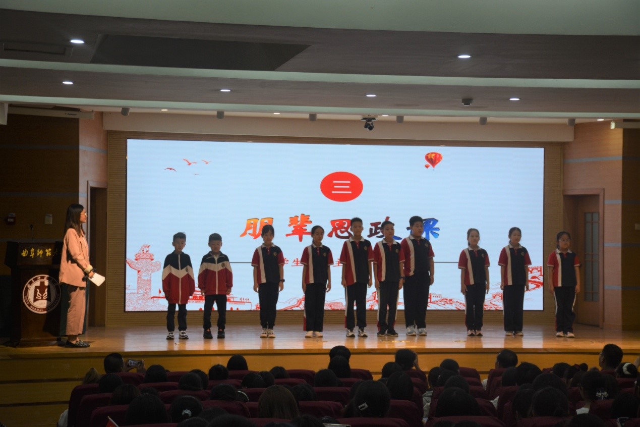 最后,文学院全体2021级新生合唱《少年中国说》,将整堂思政课推向高潮。同学们铿锵有力的诵读、嘹亮动听的歌声,整齐划一的动作,发出了新时代的最强音,唱出了文学院学子团结奋斗、勇于担当、不断前进的气势,展示了新时代大学生青春洋溢、朝气蓬勃的精神面貌,赢得了全场热烈的掌声。