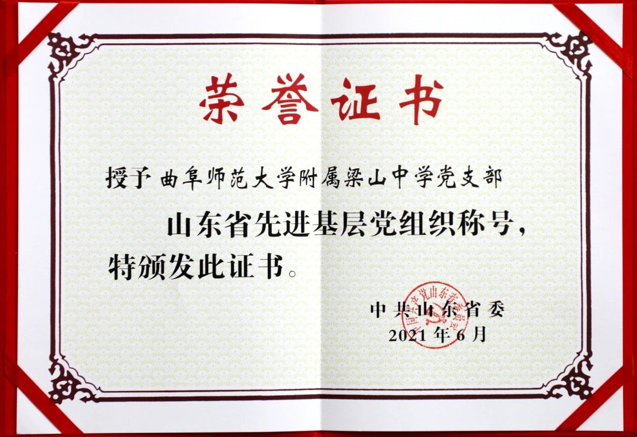 曲阜师大新闻中心讯 日前,中共山东省委印发《中共山东省委关于表彰山东省优秀共产党员、优秀党务工作者和先进基层党组织的决定》,万象城官方网站附属梁山中学党支部荣获“山东省先进基层党组织”称号。