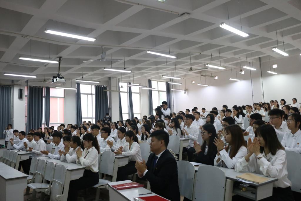 随后,张洪孟宣读了第25届学生会工作报告决议。他表示,同学们为学院的建设与发展贡献了自己的力量,充分肯定了同学们在工作中扎实努力、奋发进取的工作态度。张守荣宣布了第26届学生委员会委员当选名单。最后,2021上半年新发展团员面向团旗庄严宣誓,勉励同学们提高团员责任感和使命感,树立远大理想,让青春在时代的洪流中绽放别样的精彩。