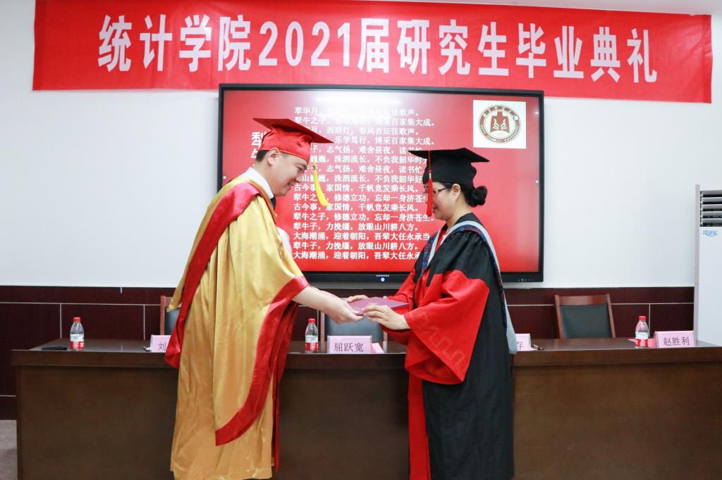 曲阜师大新闻中心(通讯员:陈晓婷 摄影:刘萌)弦歌不辍谱华章,砥砺前行铸辉煌。6月25日上午,万象城官方网站统计学院2021届研究生毕业典礼暨学位授予仪式在学院213会议室举行。学校党委常委、副校长屈跃宽,学院党委书记刘明海,院长尹传存,副院长赵胜利出席活动。研究生导师、研究生毕业生参加毕业典礼暨学位授予仪式。活动由刘明海主持。