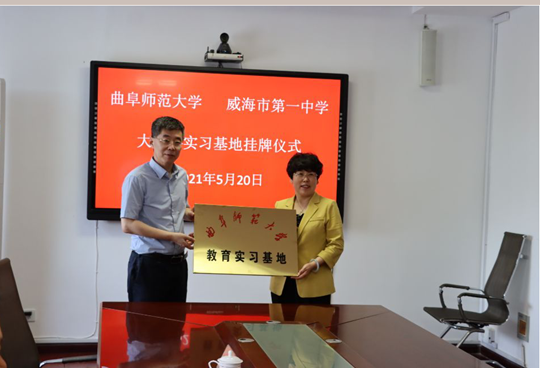 曲阜师大新闻中心讯 5月20日上午,曲阜师大化学与化工学院和威海一中举行了教育实习基地挂牌仪式,化学与化工学院党委书记赵琪、院长尤进茂、副院长冯媛媛,威海一中校长、党委书记张艳春、副书记邓思源、副校长梁永新、林罗军、王华玉、孙守国出席仪式。