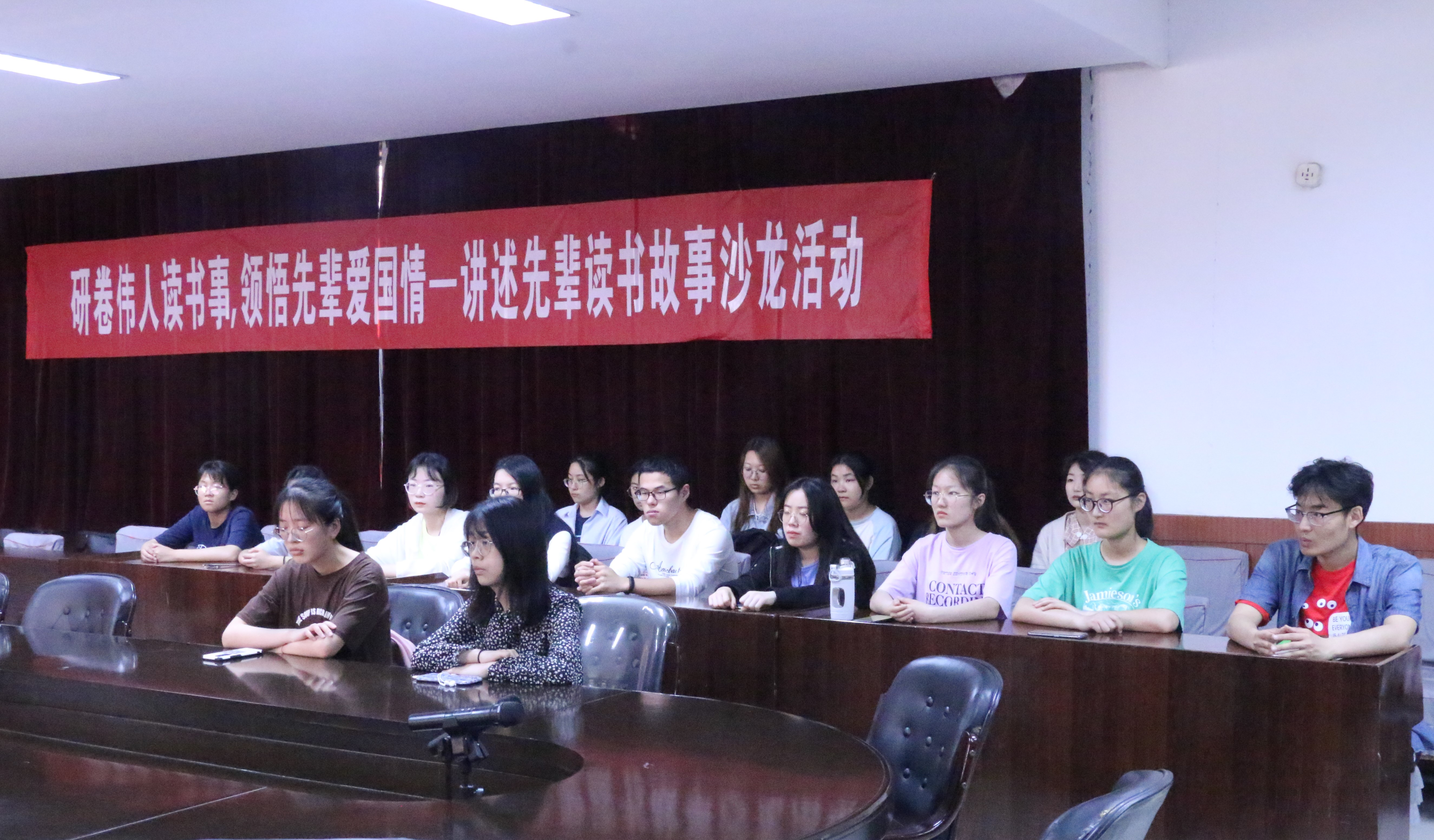 同学们在两位老师的影响和带动下,分别分享了伟人毛泽东和习近平的读书故事。同学们还向老师请教如何读书,以及如何平衡专业书籍和课外读物的关系,嘉宾、主持人和学生还就读书标注方法等问题进行了交流。