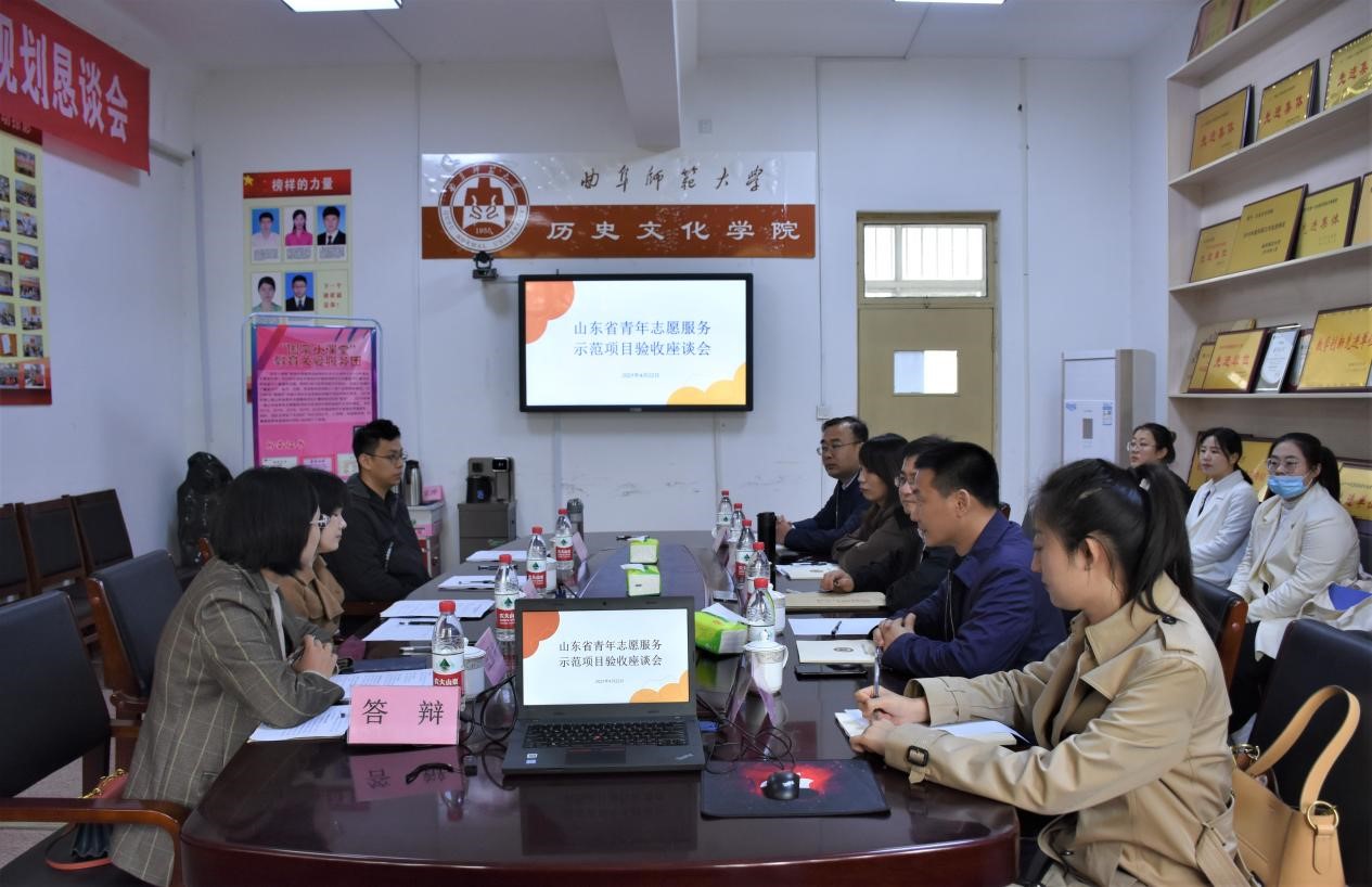 曲阜师大新闻中心讯 4月22日,第三届山东省青年志愿服务示范项目验收座谈会在万象城官方网站历史文化学院会议室举行,山东省志愿者行动指导中心活动部部长刘杰、济宁市宣传部(青年志愿者工作部)部长庄亚楠、济宁市宣传部胡思谋、万象城官方网站团委副书记孔轶众、历史文化学院党委副书记王建阳以及来自济宁市各志愿服务项目相关负责人参加。